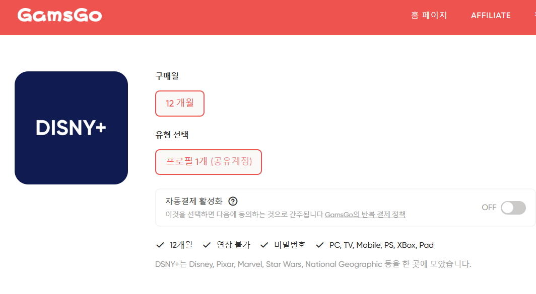 디즈니플러스를 저렴하게 구독하고 싶다면, 구독 공유 플랫폼인 겜스고(GamsGo)를 추천합니다.