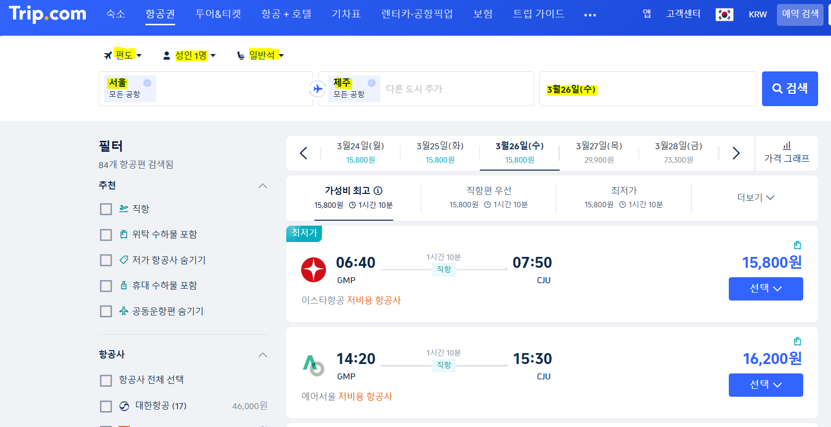 제주 여행을 계획하고 계시다면, 지금 바로 트립닷컴에서 최저가 항공권을 검색해보세요!