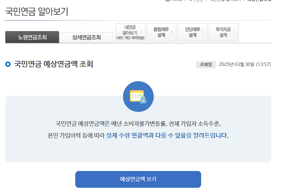 - 예상연금액 확인: 본인의 가입 이력과 납부 내역을 기반으로 산출된 예상 연금액을 확인할 수 있습니다.