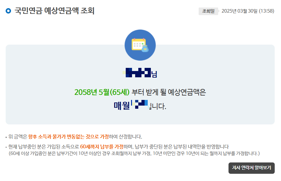 - 문의 사항: 추가적인 문의나 상담이 필요하신 경우, 국민연금공단 고객센터(☎1355)로 연락하시거나 가까운 지사를 방문하실 수 있습니다.