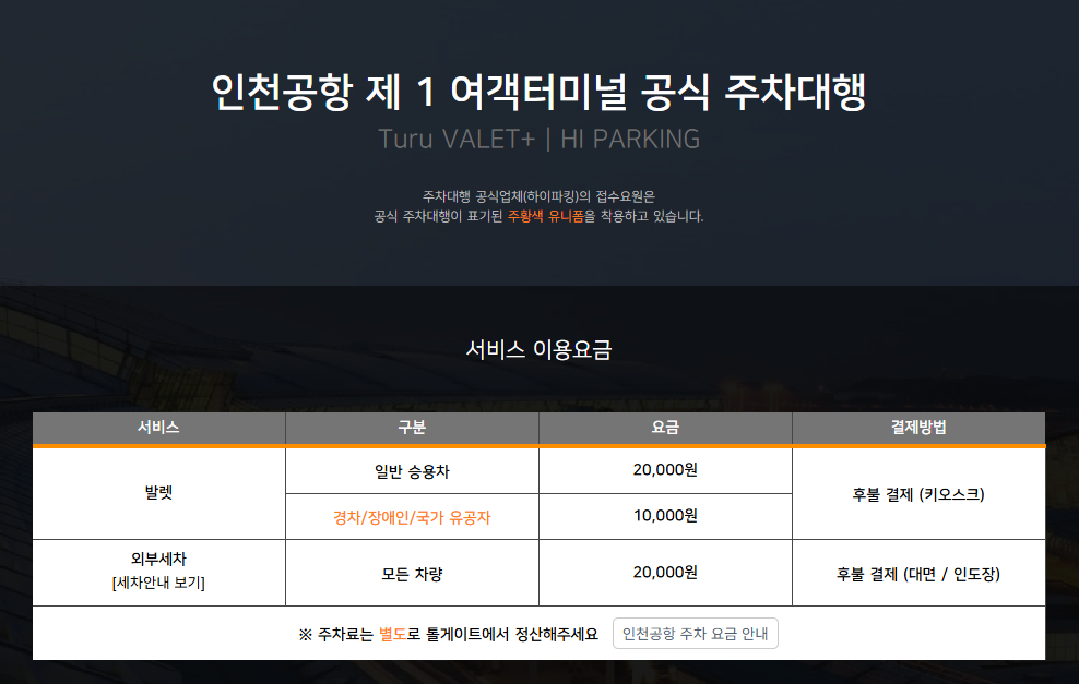 - 예약 사이트 : 인천국제공항 예약주차장 홈페이지