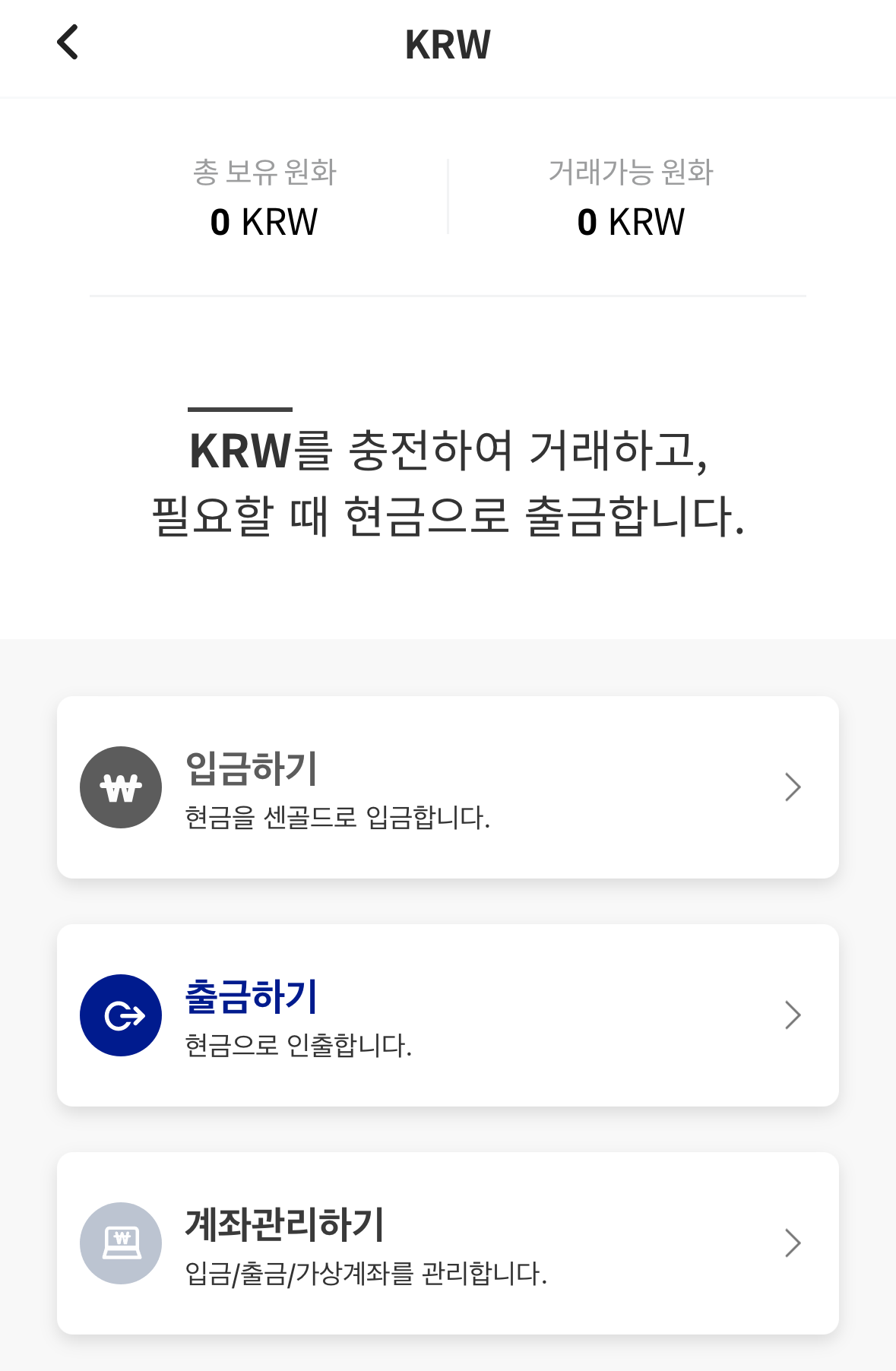 2. 지갑에 원화(KRW) 입금: