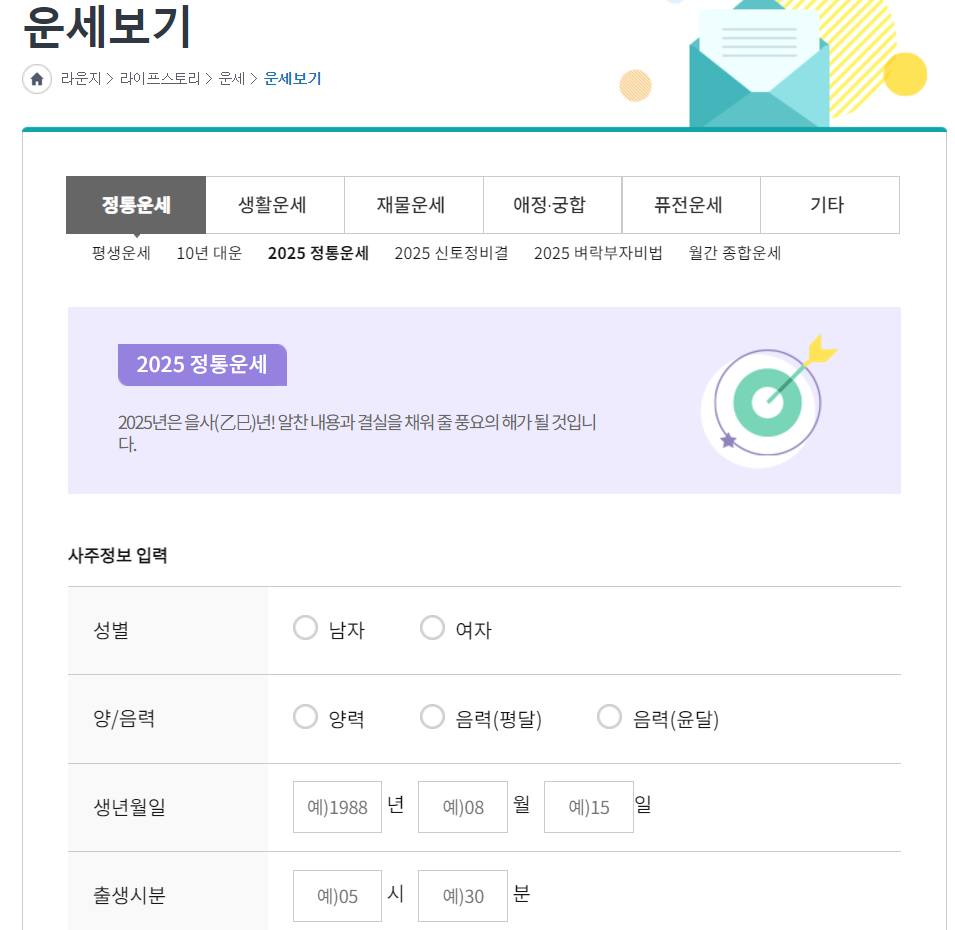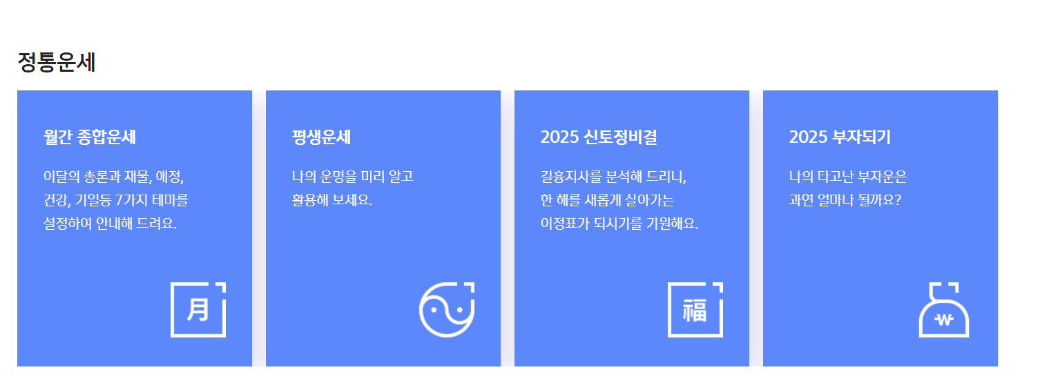 월간 종합운세, 평생운세, 2025년 신토정비결, 부자운 볼 수 있는 무료 사이트입니다.