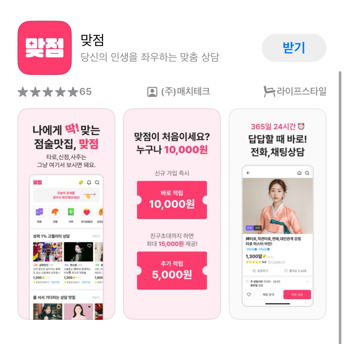 어플로 간단하게 운세를 볼 수 있고 타로, 신점, 사주도 볼 수 있습니다.